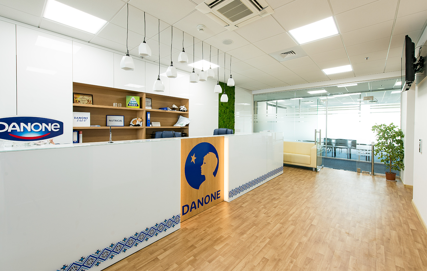 Офис компании «Danone» в БЦ «SP HALL» Площадь объекта: 1690 м²; Срок выполнения: 6 месяцев; Выполненные работы: