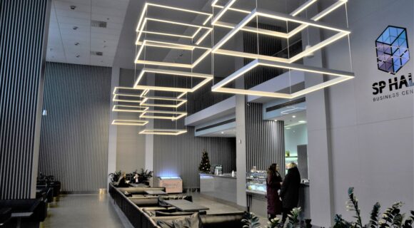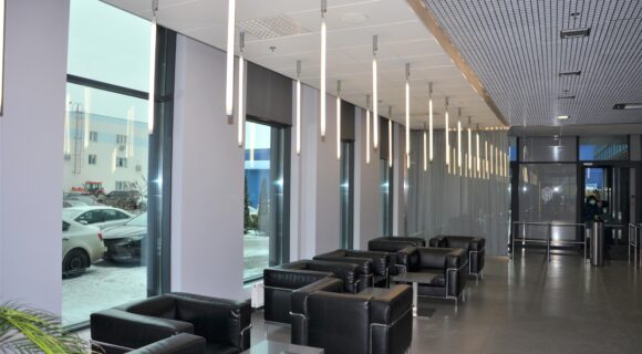 зоны общего пользования бизнес-центра «SP HALL» Площадь объекта: 2100 м²; Срок выполнения: 6 месяцев; Выполненные работы:
