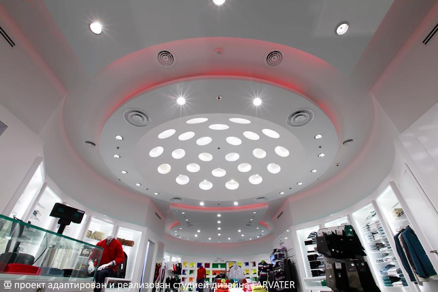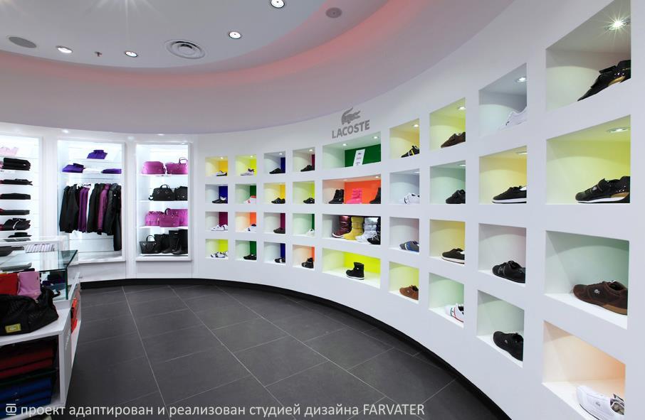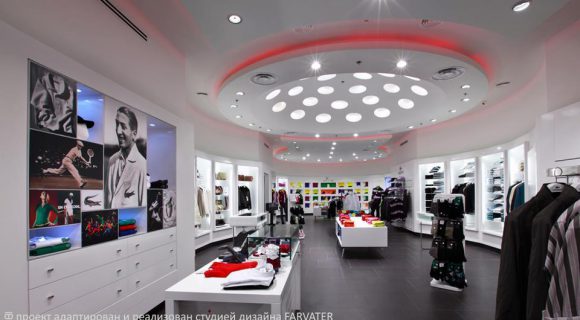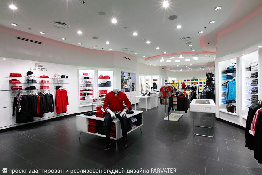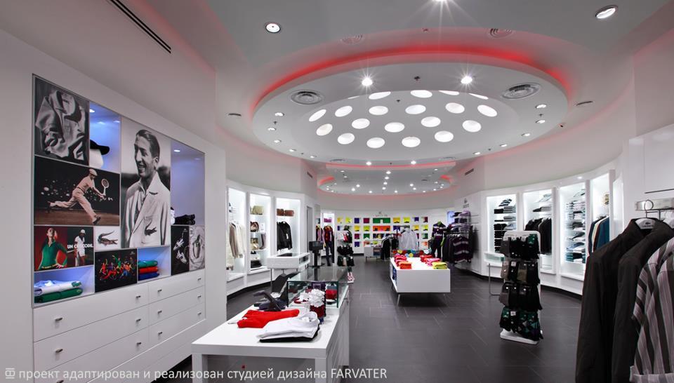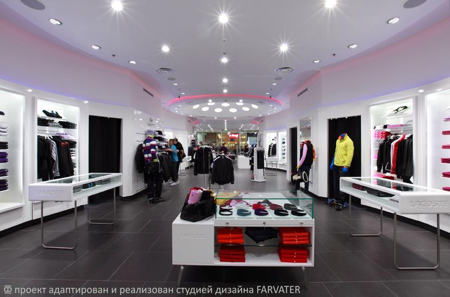 Магазин одежды «Lacoste» в ТРЦ «Lavina Mall» г. Киева Площадь объекта: 140 м²; Срок выполнения: 1 месяц; Выполненные работы: