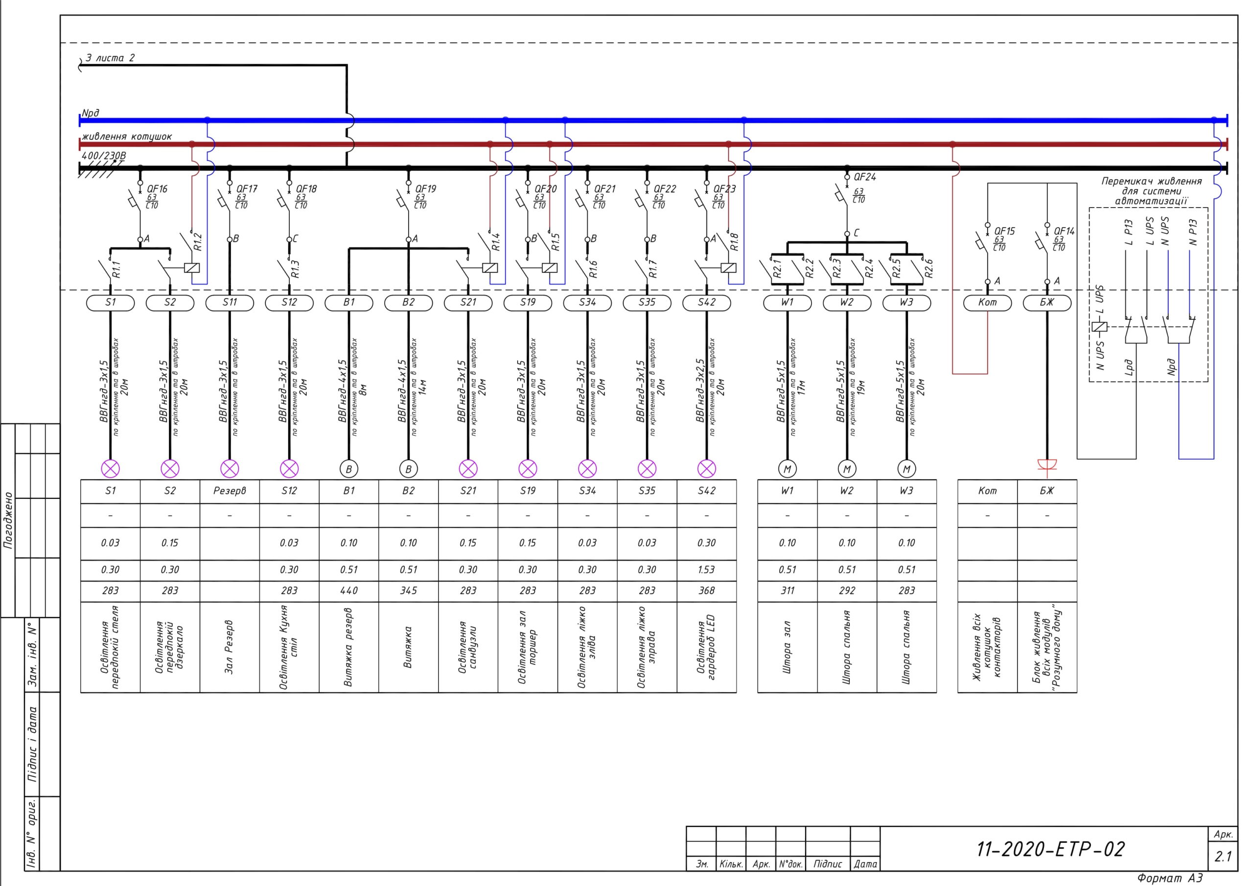 • Схем электроснабжения;